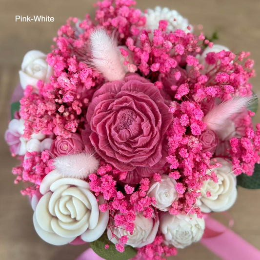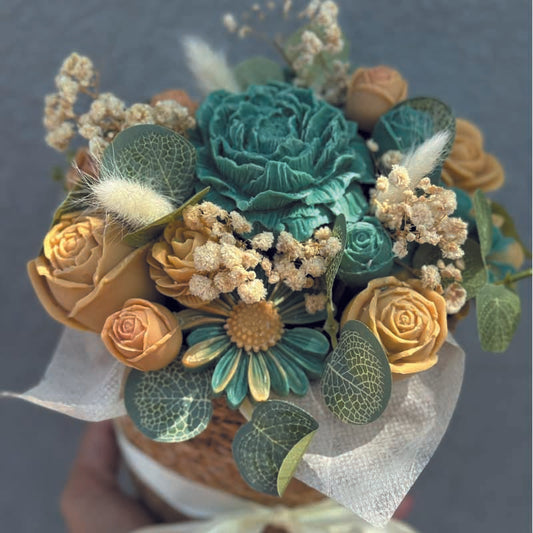 Αρωματικό Μπουκέτο από λουλούδια κεριού σόγιας 16 x 18cm σε σωμόν κουτί