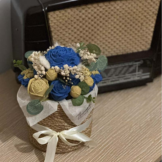 Αρωματικό Μπουκέτο από λουλούδια κεριού σόγιας Blue Sand σε ψάθινο κασπώ