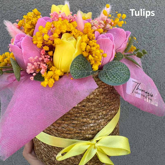 Αρωματικό Μπουκέτο από λουλούδια κεριού σόγιας Colors Love σε ψάθινο κασπώ